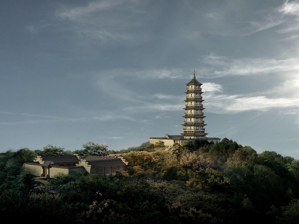 体现建筑宏伟气势,突出宝塔的灵光之气。